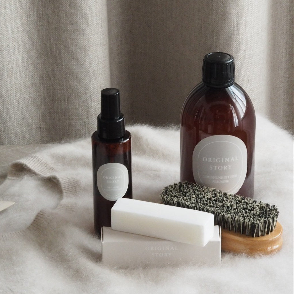 Pitkäjänteisyys ja laadukkuus ovat meille ensisijaisen tärkeitä arvoja. Haluamme luoda vaatteita, jotka kestävät aikaa ja säilyttävät arvonsa vuodesta toiseen. Tämän vuoksi olemme kehittäneet myös oman vaatteiden huoltotuotesarjan, joka valmistetaan Suomessa. Uskomme, että vaatteista oikein huolehtimalla, ne säilyvät kauniina pitkään.