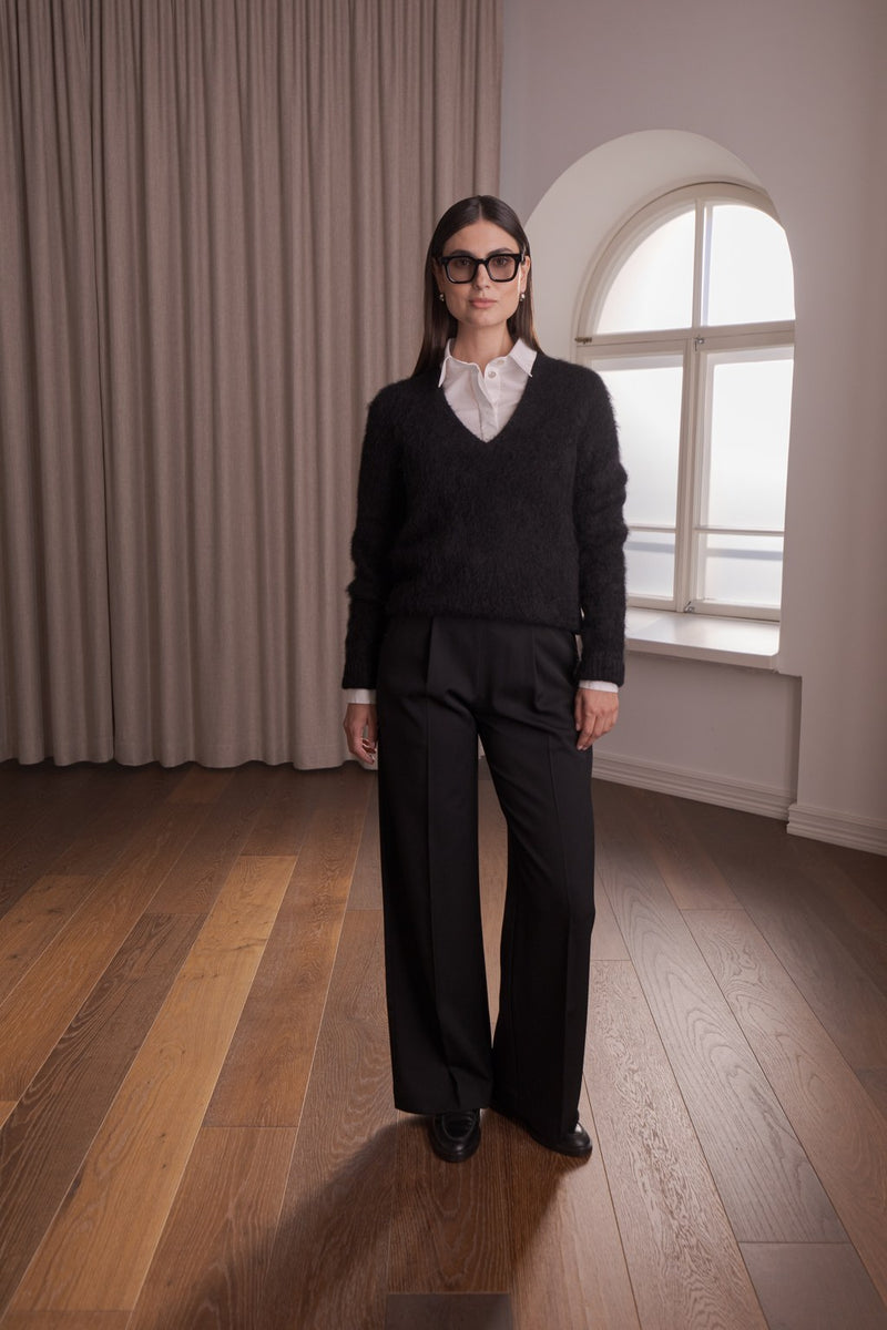 Alpakkasekoiteneule V-kaula-aukolla, Black
