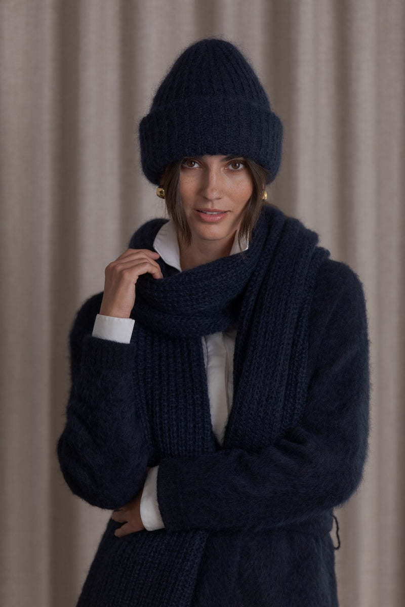 Italialaisesta langasta neulottu pehmeä huivi on ihanteellinen valinta syksyyn ja talveen. Kid mohairin, hienon merinovillan ja polyamidin yhdistelmä on kestävä, lämmin ja pehmeä. Huivin koko on 35 x 200 cm.