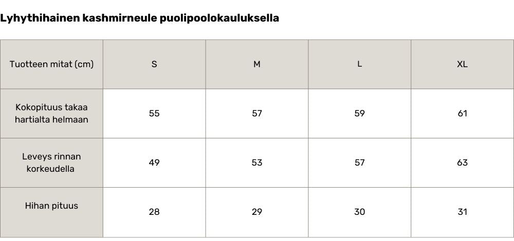 Karliea-neule on ajaton ja monikäyttöinen valinta, joka on valmistettu pehmeästä ja laadukkaasta 100 % kashmirista. Lyhythihainen malli puolipoolokauluksella tuo neuleeseen modernia ilmettä, ja istutettu hihalinja antaa ryhdikkään sekä kauniisti istuvan siluetin.