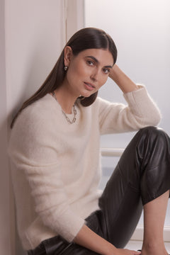 Pitkähihainen alpakkasekoiteneule, Cream