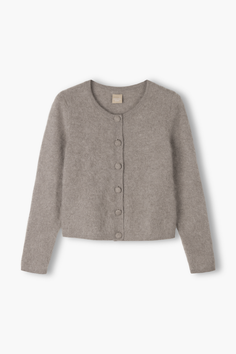 Katie-kashmirneuletakki on pehmeä ja huoliteltu valinta, joka yhdistää klassisen ilmeen ja rennon käyttömukavuuden. Etureunaa koristavat kuusi kangaspäällysteistä nappia, jotka tuovat neuletakkiin kauniin yhtenäisen viimeistelyn. Istutettu hihalinja luo ryhdikkään ja jakkumaisen siluetin, kun taas kapeat neuloskäännökset hihansuissa ja helmassa lisäävät siroa keveyttä. Avara pyöreä kaula-aukko laskeutuu luonnollisesti ja korostaa kauniisti kaulaa ja hartialinjaa. Valmistettu 100% kashmirista, neuletakki on ajaton ja monikäyttöinen, täydellinen kerrospukeutumiseen ympäri vuoden.