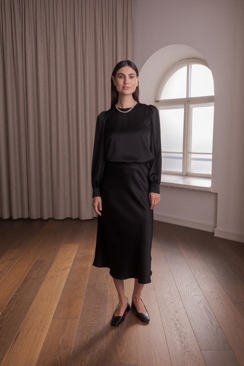 Pitkähihainen satiinipaita puhvihihalla, Black